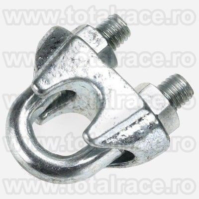 Total Race Romania comercializeaza din stoc bride cablu turnate DIN741, bride cablu otel, bride zincate pentru cabluri cu diametru 3 mm la 40 mm , bride metalice de strangere cablu, bride fixare cablu, brida zincata pentru cabluri cu diametru de la Ø3 la Ø40, bride-cleme de prindere cablu, din otel zincat, pentru cablu otel, clipsuri (bride) tip DIN 741, bride zincat cablu tractiune, accesorii cablu tractiune, gama completa bride cablu. Puntea bridei este turnata iar surubul U din otel slab-aliat , standard: DIN 741 , finisare: electro-galvanizare.