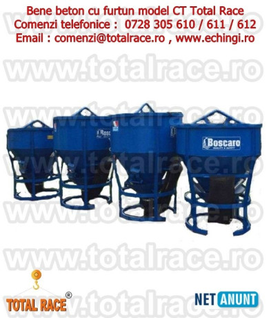 Total Race va ofera livrare rapida direct din stoc sau la comanda cupe de beton productie Italia cu diferite capacitati, cupa de beton pentru macara, bene de beton, cupe macara, bena macara, bena cu descarcare centrala si furtun de cauciuc, bene macara profesionale, bene beton cu descarcare laterala, bene beton cu descarcare centrala si laterala. Pentru detalii accesati: https://lanturimacara.ro/produse/bene-macara/bene-beton/